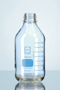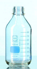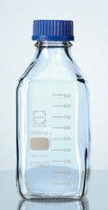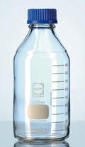 With DIN Thread, graduated c/w blue PP screw-cap and poring ring ISO 4796