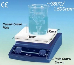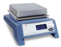 | has a glass ceramic top which has excellent chemical resistance and allows much higher plate temperature | has a robust aluminium/silicon alloy top plate which gives even plate temperature and will withstand the knocks of everyday use | A stylish digital hotplate designed for very accurate control of plate temperature |
